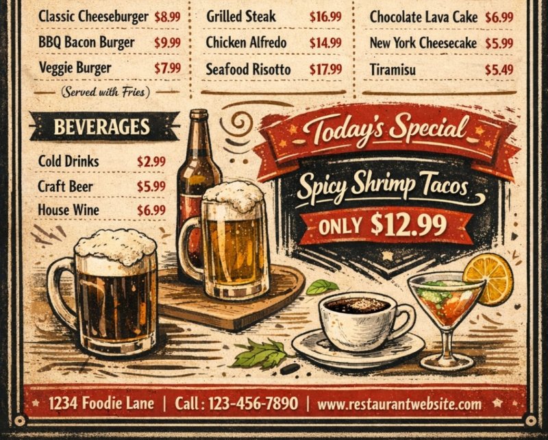 I can design a professional, well-looking menu tailored for your restaurant or café.